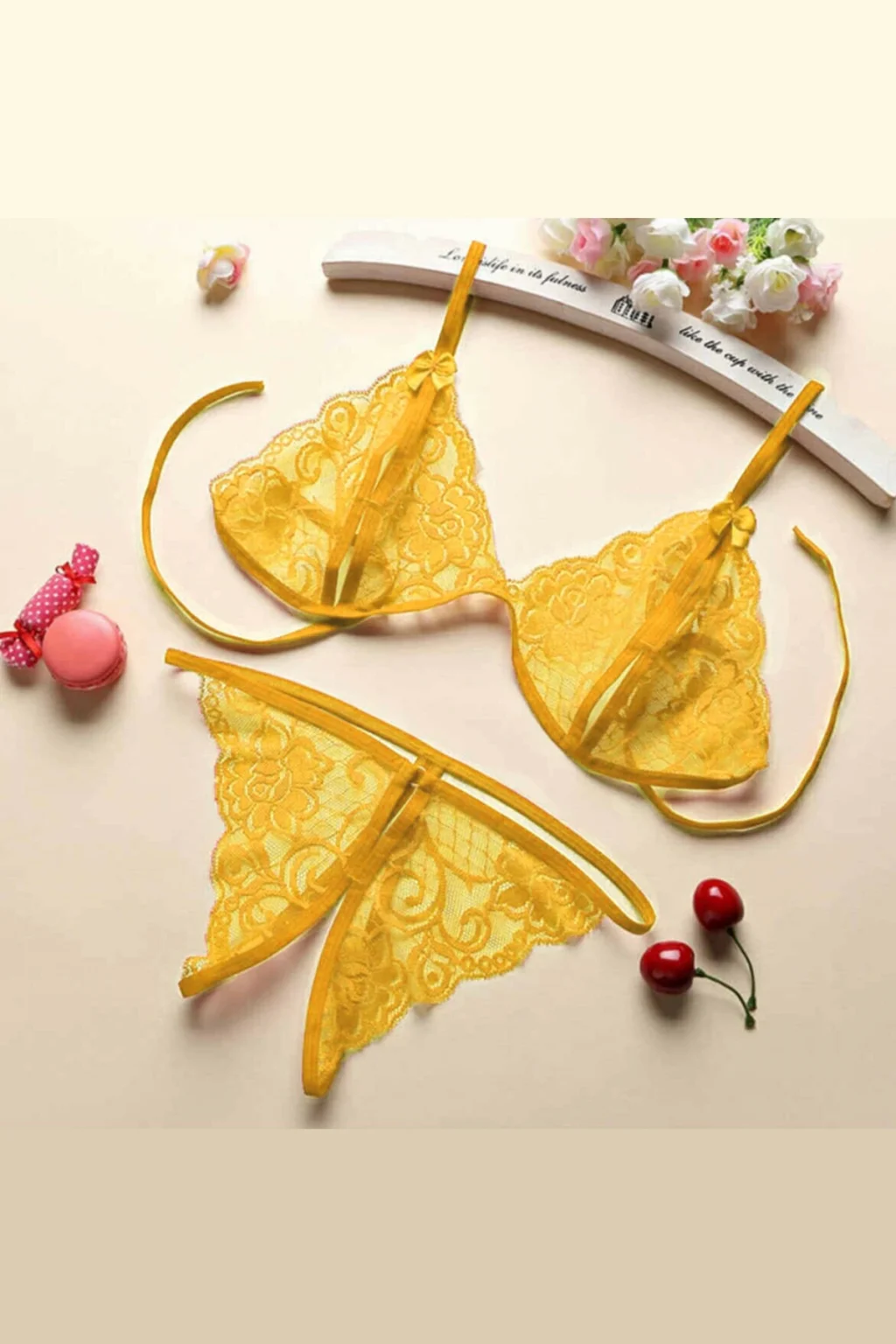 Kadın Sarı Dantelli Sütyen Külot Takımı – Modern, Konforlu ve Günlük Kombinlere Uygun