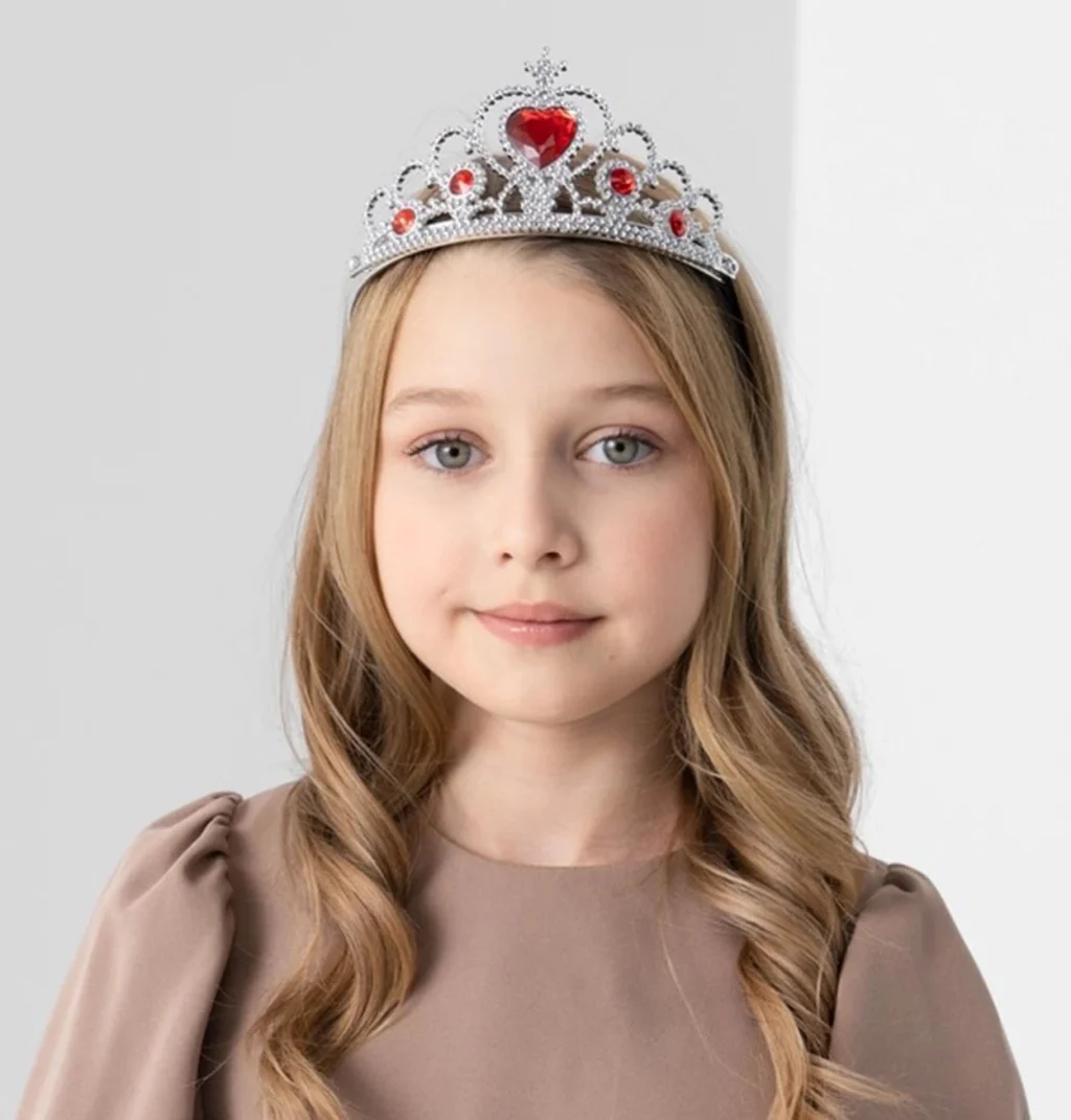 Kalp Taşlı Kırmızı Renk Karlar Ülkesi Elsa Anna Frozen Tacı