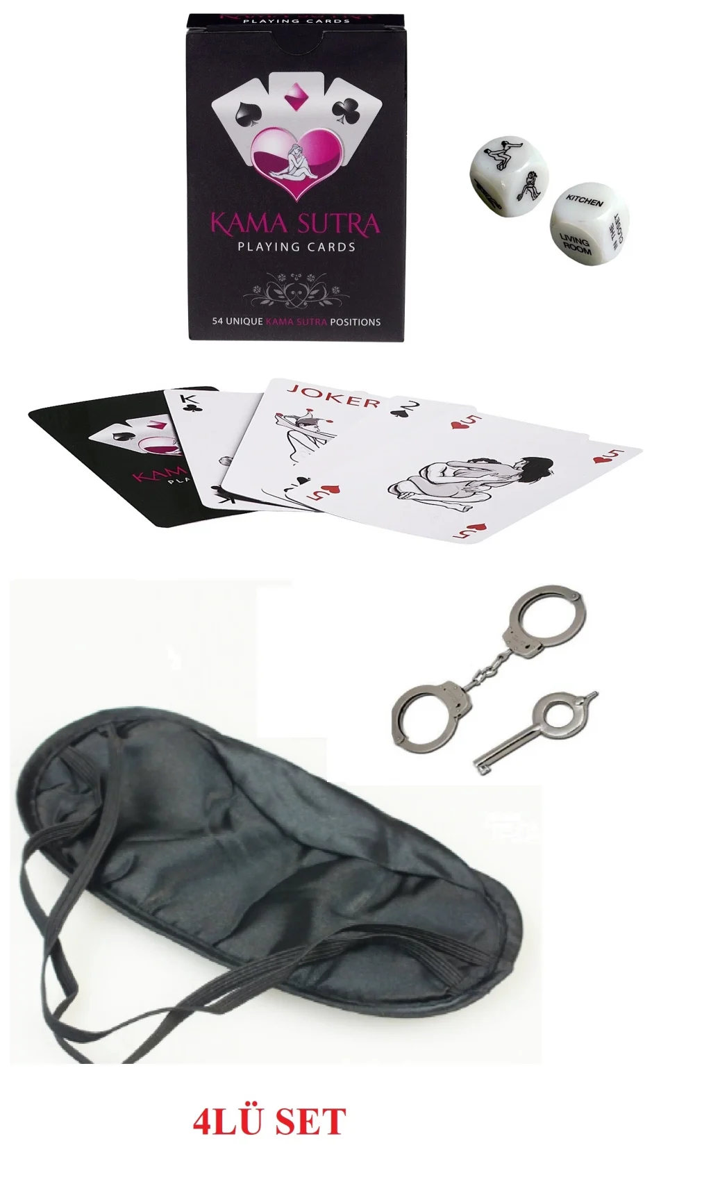 Kamasutra Aşk Seti - Kelepçe - Zar- Kart - Göz Bandı