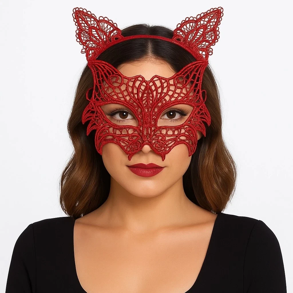 • <p><span style="color:000000">Kırmızı dantel kedi maskesi ve uyumlu kedi kulaklı taç seti, kadınlar için tasarlanmış şık ve dikkat çekici bir aksesuardır. Özel günlerde, temalı partilerde, Cadılar Bayramı, bekarlığa veda geceleri veya fotoğraf çekimlerinde tarzınızı ön plana çıkarmak için ideal bir seçimdir. Hafif yapısı ve esnek formu sayesinde yüze kolayca uyum sağlar. Dantel dokusu feminen ve zarif bir görünüm sunar. Kırmızı rengiyle dikkat çeker, sizi gecenin yıldızı yapar.</span></p>