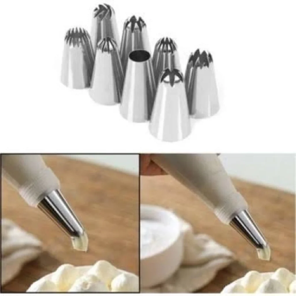 KREMA SIKMA SETİ 10 PARÇALezzetli Tatlılarınızı Profesyonel Dokunuşlarla Süsleyin!Krema Sıkma Seti, pasta süslemelerinizde ustalıkla kullanabileceğiniz mükemmel bir yardımcıdır. Paslanmaz çelikten üretilen uçları sayesinde sağlık ve hijyen standartlarına uygun olan bu set, pasta, cupcake, kurabiye ve diğer tatlılarınızı süslerken kullanabileceğiniz çok yönlü bir araçtır. Her türlü krema, glazür veya sıkma kreması ile uyumlu olan bu set, farklı uçlarıyla çeşitli desenler ve şekiller oluşturmanıza imkan tanır. Profesyonel pasta şeflerinden ev şeflerine kadar herkesin kolayca kullanabileceği pratik bir tasarıma sahiptir. Krema Sıkma Seti, yaratıcılığınızı ve pasta süsleme becerilerinizi bir üst seviyeye taşırken, dayanıklı yapısıyla uzun süreli kullanım sağlar. Hijyenik ve kullanışlı olmasıyla mutfağınızın vazgeçilmez araçlarından biri olacak olan bu set, her an hazır olduğunuzda lezzetli tatlılarınızı mükemmel bir şekilde süslemenize yardımcı olur.Paket İçeriği1 adet krema sıkma seti 10 parça