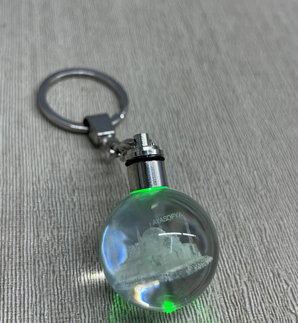 LEDLİ AYASOFYA TASARIMI KRİSTAL ANAHTARLIKÜrün Özellikleri10.5 cm boyutunda olan bu LED'li Ayasofya Tasarımı Kristal Anahtarlık, şık tasarımı ve LED ışık özelliğiyle dikkat çekmektedir. Ayasofya'nın zarif tasarımını yansıtan bu anahtarlık, hem dekoratif hem de işlevsel bir aksesuardır. Sevdiğiniz kişilere hediye olarak verebileceğiniz özgün ve şık bir seçenek sunar. Anahtarlık, LED ışık ile aydınlanarak karanlıkta çok güzel bir görünüme bürünür.Paket İçeriği1 Adet LED'li Ayasofya Tasarımı Kristal Anahtarlık