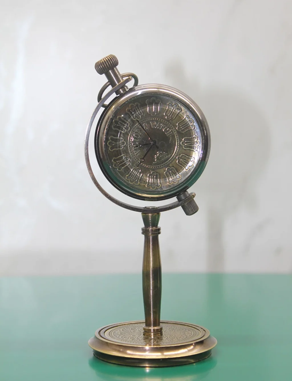 MASA ÜSTÜ PİRİNÇ SAAT MODEL 6Ürün ÖzellikleriMasa üstü pirinç saat model 6, şık ve zarif bir tasarıma sahip dekoratif bir objedir. Pirinç malzemeden üretilmiş bu saat, nostaljik bir görünüme sahip olup masa üzerinde dikkat çekici bir dekorasyon parçası olarak kullanılabilir. Saat, işlevsel olmanın yanı sıra estetik bir görsel sunarak ofis ve ev dekorasyonu için mükemmel bir seçimdir. Ayrıca, zarif yapısı ile hediye olarak da idealdir.Paket İçeriği1 Adet Masa Üstü Pirinç Saat Model 6