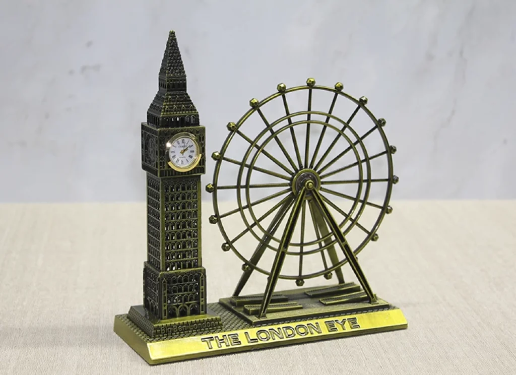 METAL SAAT KULESİ DÖNME DOLAP Ürün ÖzellikleriMetal Saat Kulesi ve Dönme Dolap, Big Ben ve London Eye tasarımlarını birleştirerek şık ve dekoratif bir görünüm sunar. 20x18 cm boyutları ile hem masa hem de raf dekorunda kullanılabilir. Altın renk detayları ile dikkat çeken bu ürün, hem işlevsel saat işlevi hem de dekoratif özellikleri ile ev ve ofis dekorasyonu için ideal bir aksesuardır. Yüksek kaliteli metal malzeme ile üretilmiştir ve detaylı işçilik ile her açıdan göz alıcıdır.Paket İçeriği1 Adet Metal Saat Kulesi Dönme Dolap