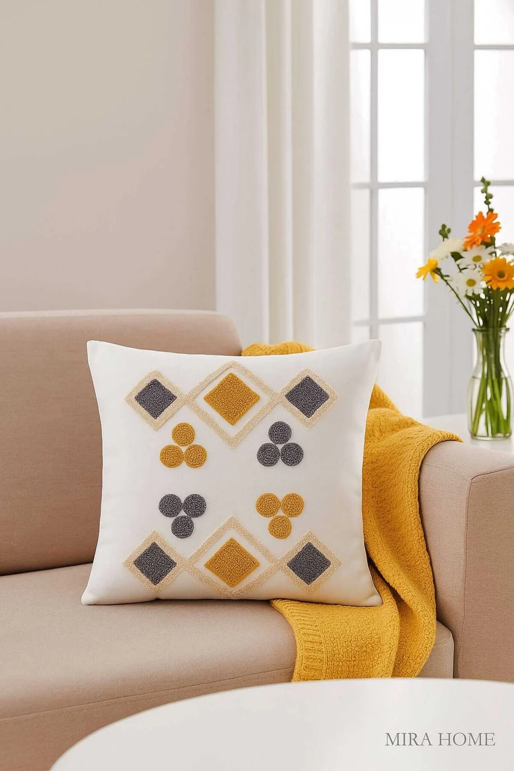 Mira Home Dekoratif Punch Kare Nakışlı Kırlent Kılıfı