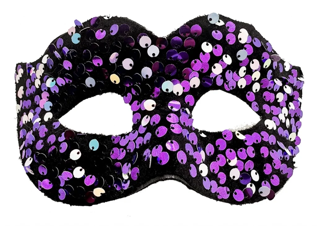 Mor Renk Arkadan Lastikli Pul Payet İşlemeli Balo After Parti Maskesi