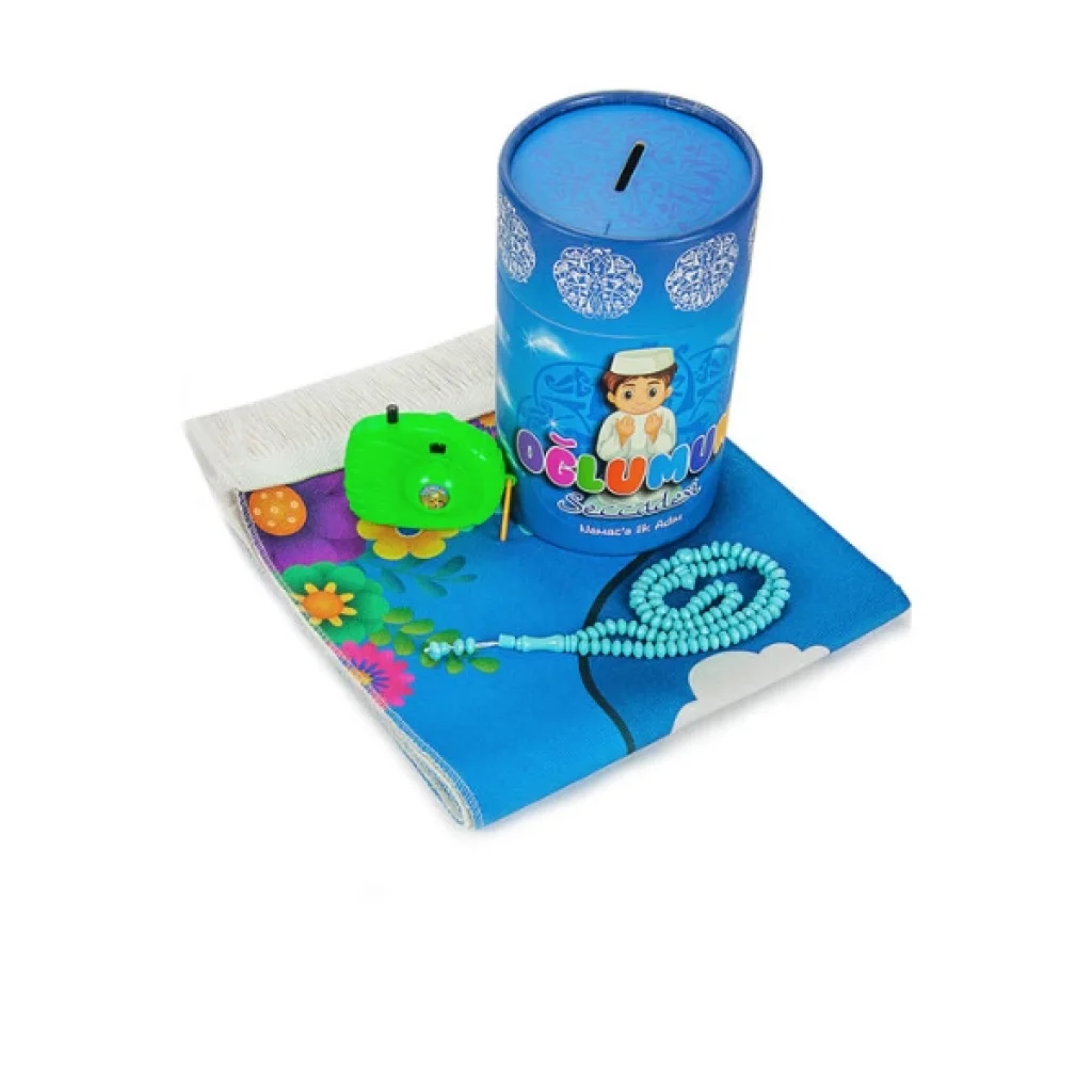 NAMAZA İLK ADIM OĞLUMUN SECCADESİÜrün ÖzellikleriNamaza İlk Adım Oğlumun Seccadesi, çocuklarınıza hediye olarak alabileceğiniz, eğlenceli ve kullanışlı bir seccadedir. Yumuşak dokulu yüzeyi, rahat bir kullanım sunarak uzun süreli ibadetlerde bile konfor sağlar. Seccade üzerindeki ilgi çekici görseller sayesinde çocuklarınızı ibadete alıştırabilir ve onları namaza teşvik edebilirsiniz. Ayrıca, seccade kutusu kumbara olarak kullanılabilir, böylece çocuklarınız ibadet ederken para biriktirme alışkanlığı da kazanabilir. Tesbih ve içinde Mekke - Medine görselleri olan oyuncak fotoğraf makinesi hediyesiyle birlikte, çocuklarınız için hem eğitici hem de eğlenceli bir hediye seçeneğidir. Paket İçeriği1 adet Namaza İlk Adım Oğlumun Seccadesi 1 adet Tesbih Hediyesi1 adet Mekke - Medine Görselleri olan Oyuncak Fotoğraf Makinesi