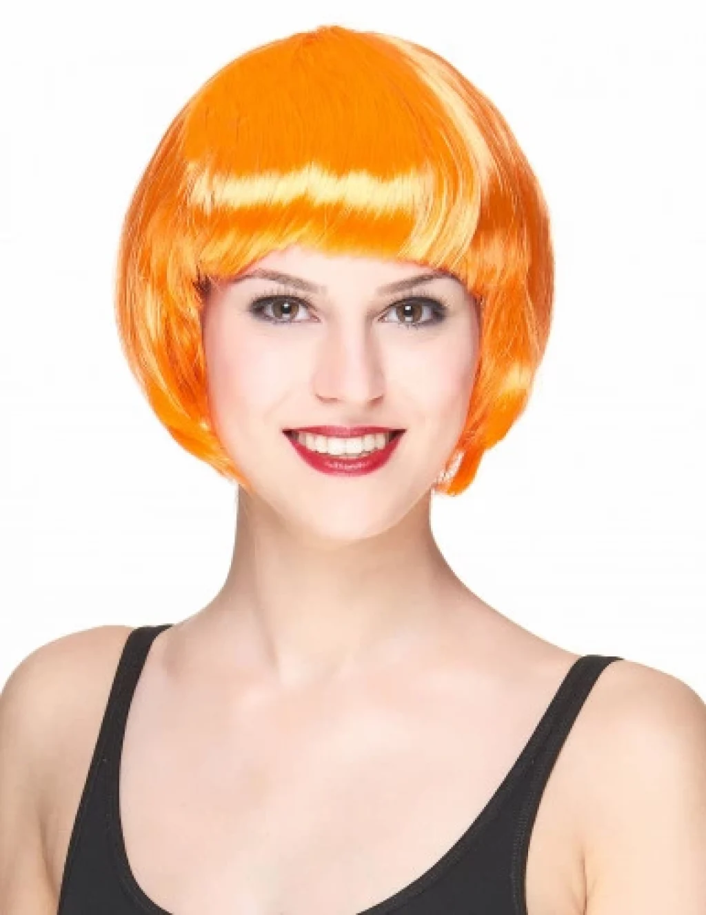 Neon Turuncu Renk Açık Turuncu Küt Parti Peruğu