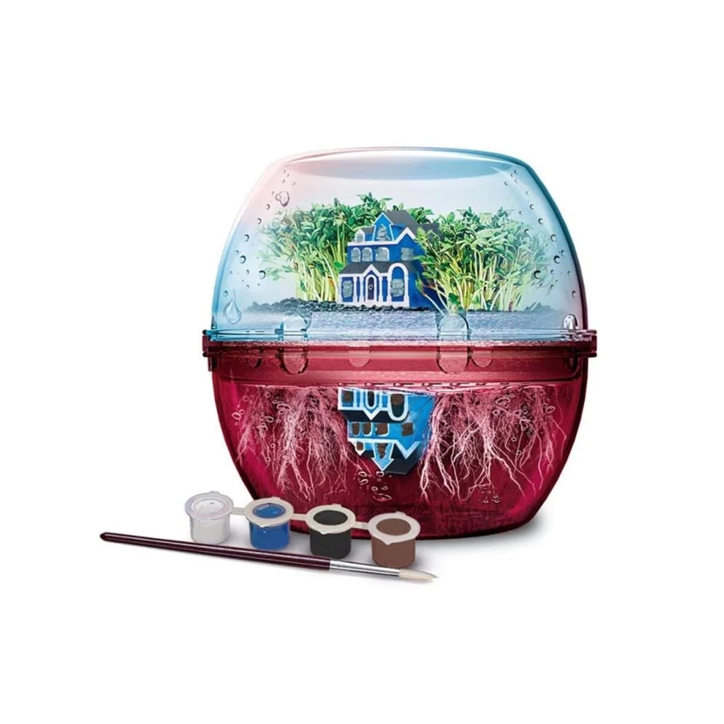 Botanik ve yaratıcılığı birleştiren bir etkinlik. Hidroponik kullanarak bitkileri yetiştirin, kökleri yavaş yavaş gelişerek kırmızı tabana batana kadar.