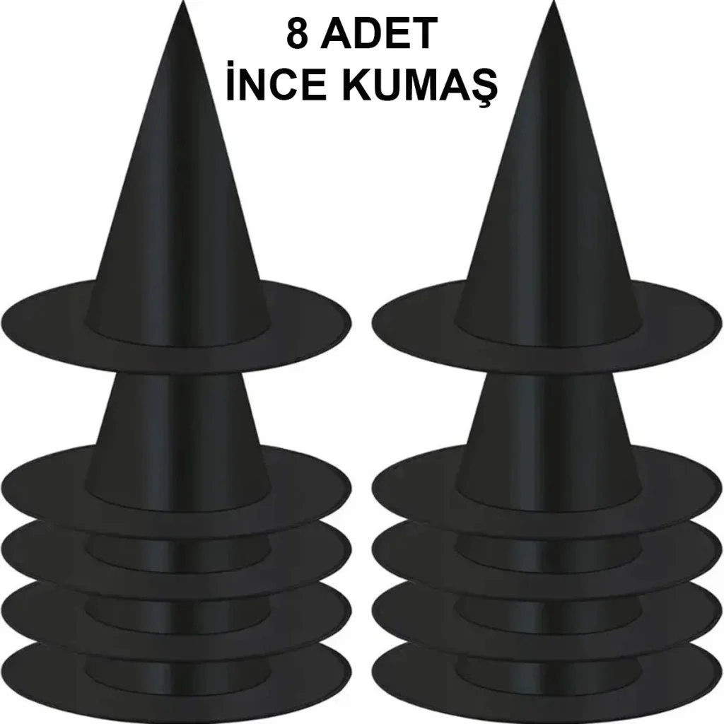 Nessiworld 8 Adet Siyah Cadı Şapkası – Yetişkin & Çocuk Kostüm Aksesuarı