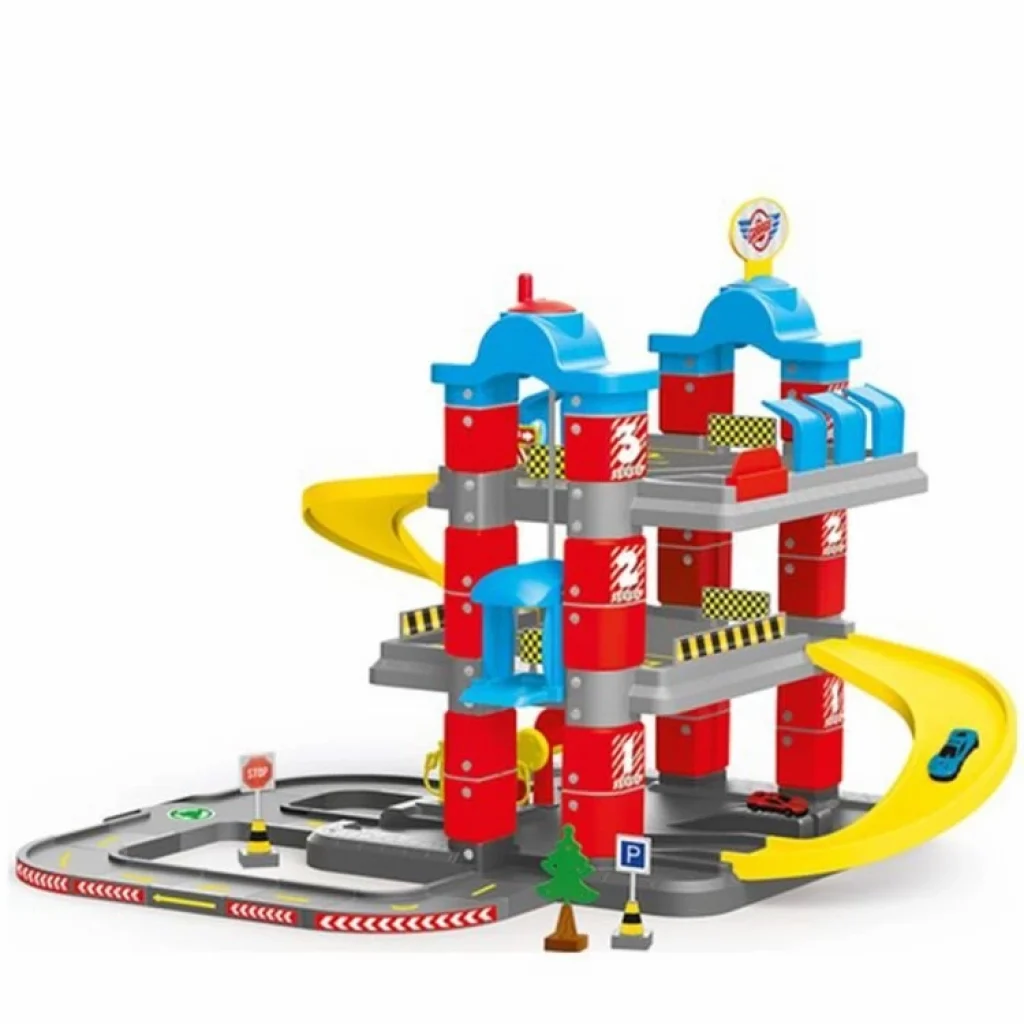 Çocukların üst katlardan alt katlara arabalarını sürebileceği mükemmel bir oyun seti.
