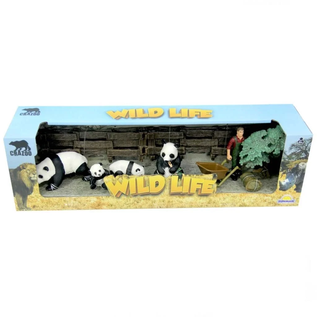 Panda, Kaplan ve Ayı gibi hayvanlar ile birlikte gelen vahşi hayvanlar ile çocuklar ormanda yaşayan hayvanları