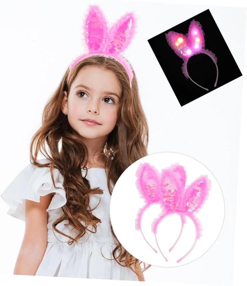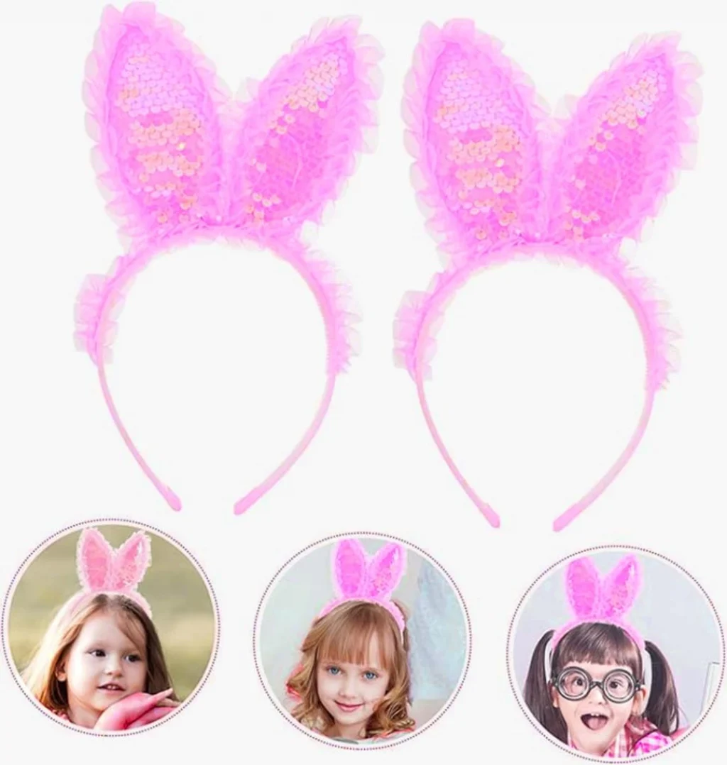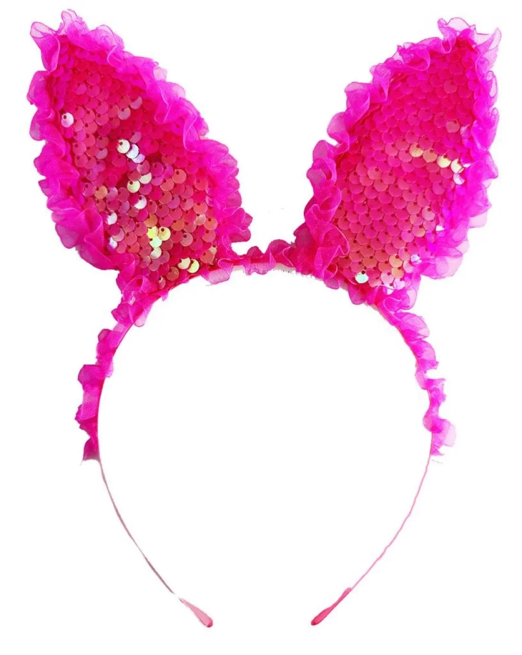 Eğlencenin ve şıklığın bir araya geldiği Kenarları Dantelli Fuşya Pullu Payetli Led Işıklı Tavşan Kulak Taç ile partilerin yıldızı olun!