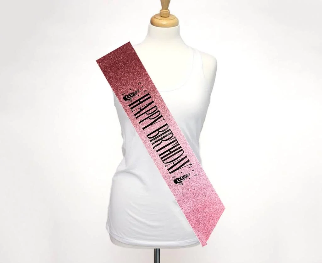 Pembe Üzeri Siyah Büyük "Happy Birthday" Yazılı Simli Işıltılı Kuşak Kemer'i Neden Seçmelisiniz?