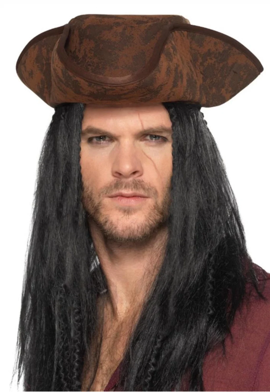 - Siyah Peruk Detayı: Şapka, siyah peruk ile birleştirilmiştir. Bu detay, korsan kaptanının uzun ve dağınık saçlarını taklit ederek kostüme otantik bir hava katar.