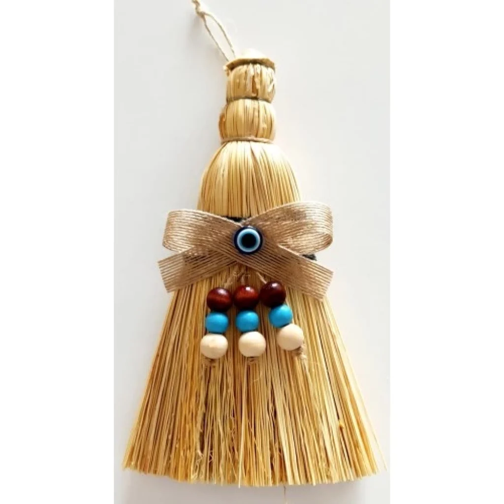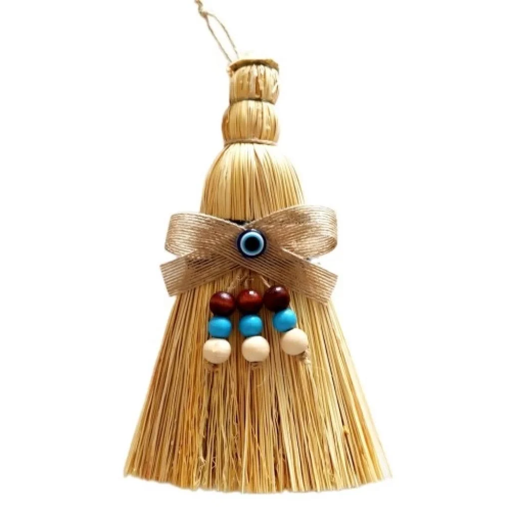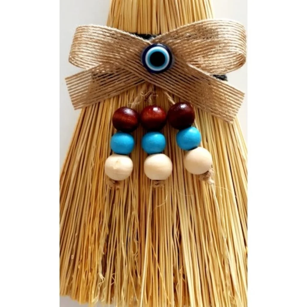 Otantik Ahşap Boncuklu Nazarlıklı Otantik Mini Süpürge Duvar Süsü