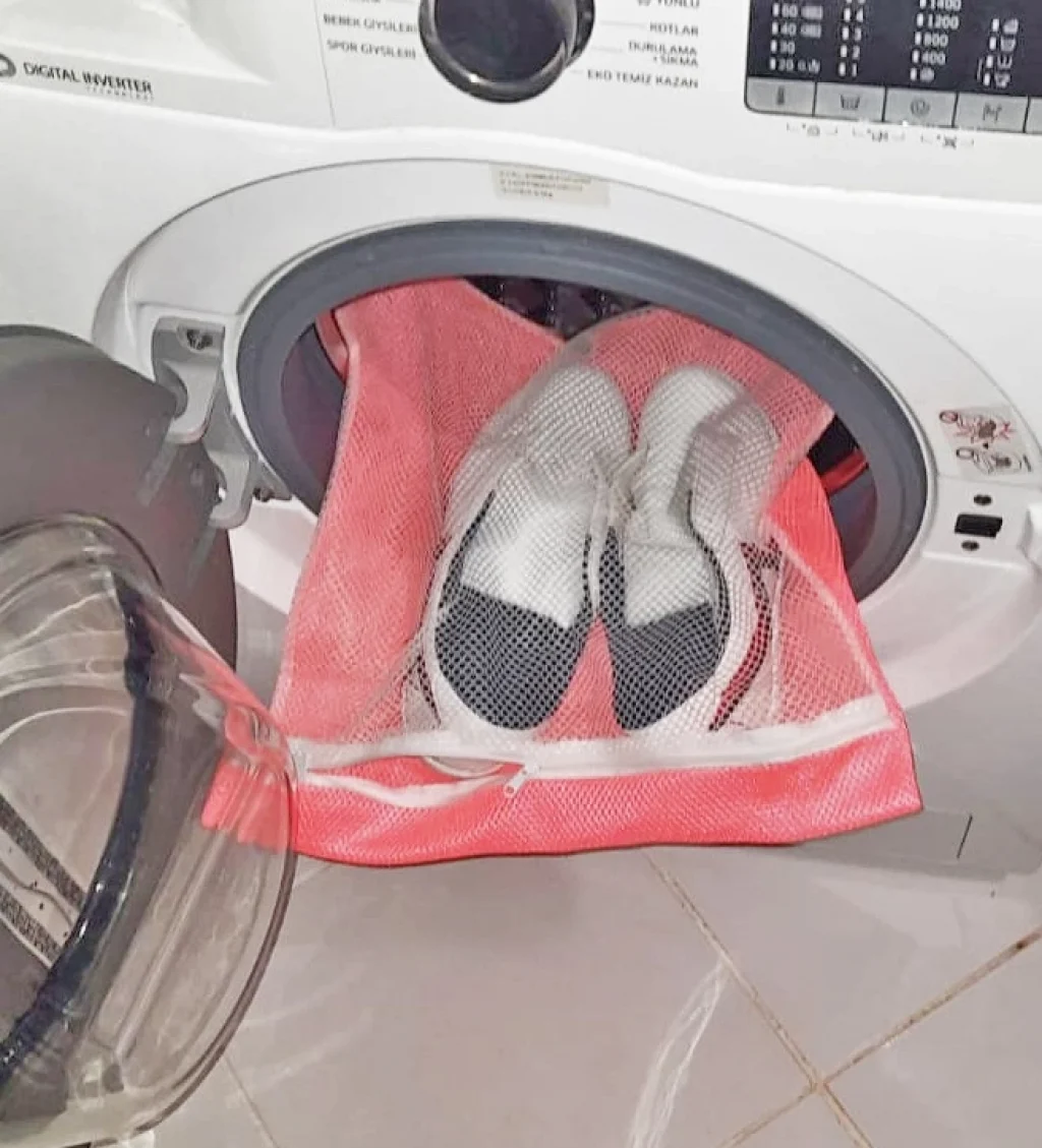 Pembe Fermuarlı - Hassas Çamaşır Terlik Ayakkabı Yıkama Filesi Büyük Boy