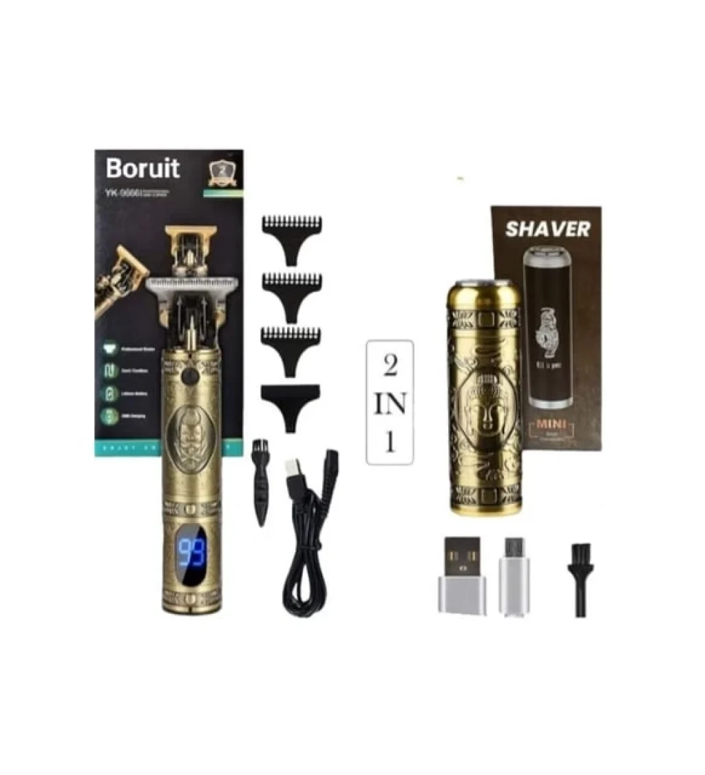 Pro 2 İn 1 Vintage Traş Makinesi Şarjlı Dijital Göstergeli Aliminyum Gövde