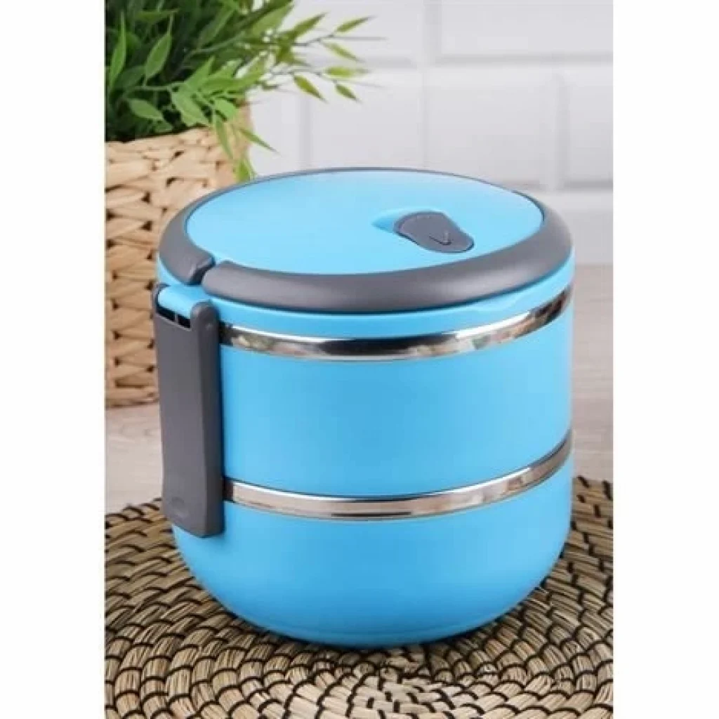 Sefer Tası Yemek Termosu Saklama Kabı Termosu 2li - Çelik Mavi