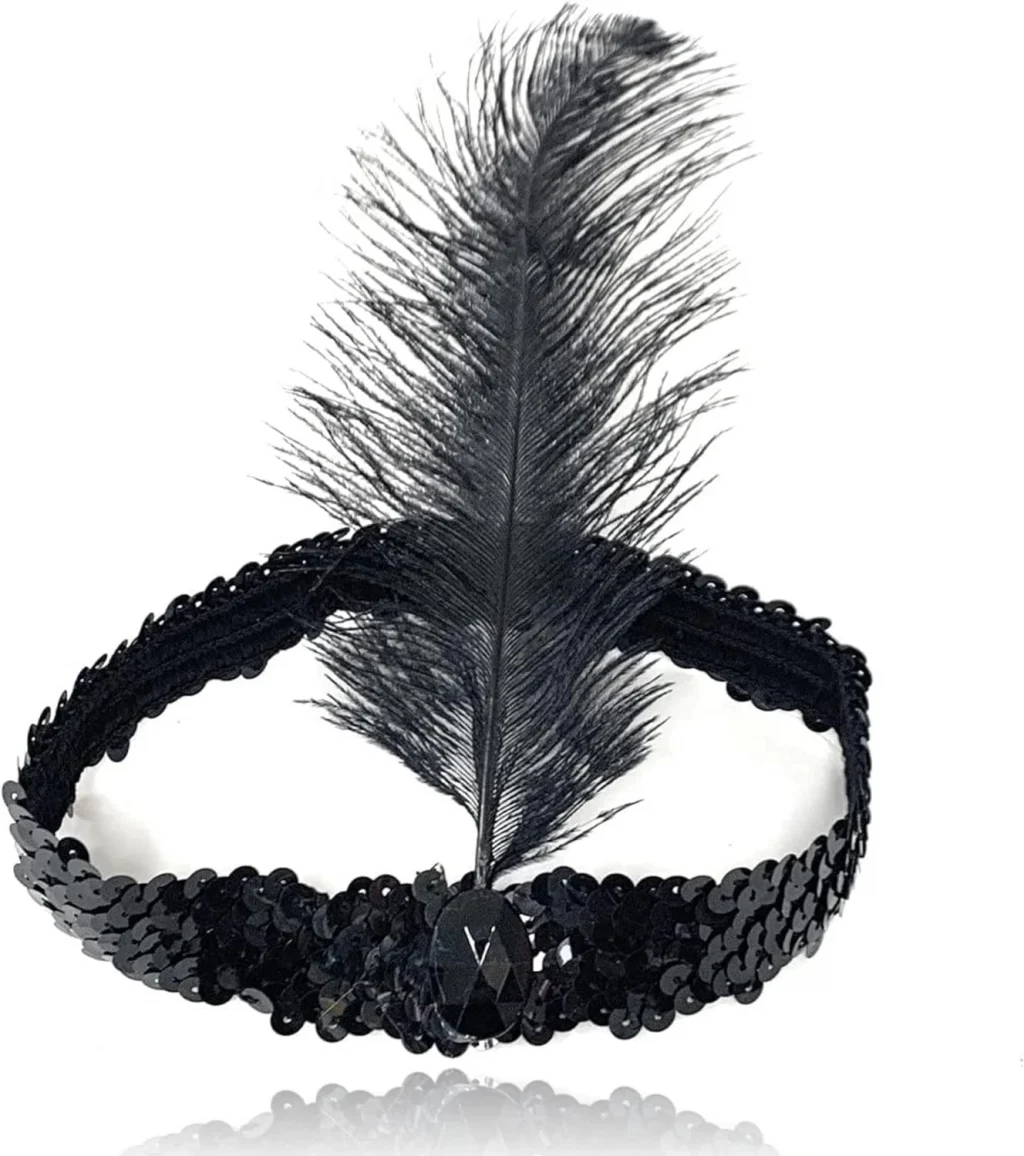 Siyah Renk Çarliston Başlık 90 Lı Yıllar 80 Li Yıllar Tüylü Saç Bandı