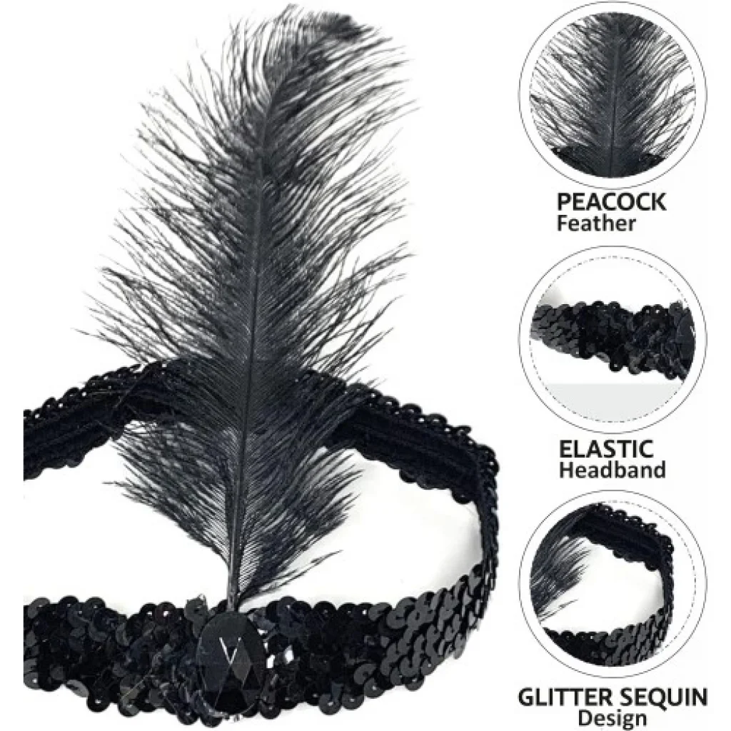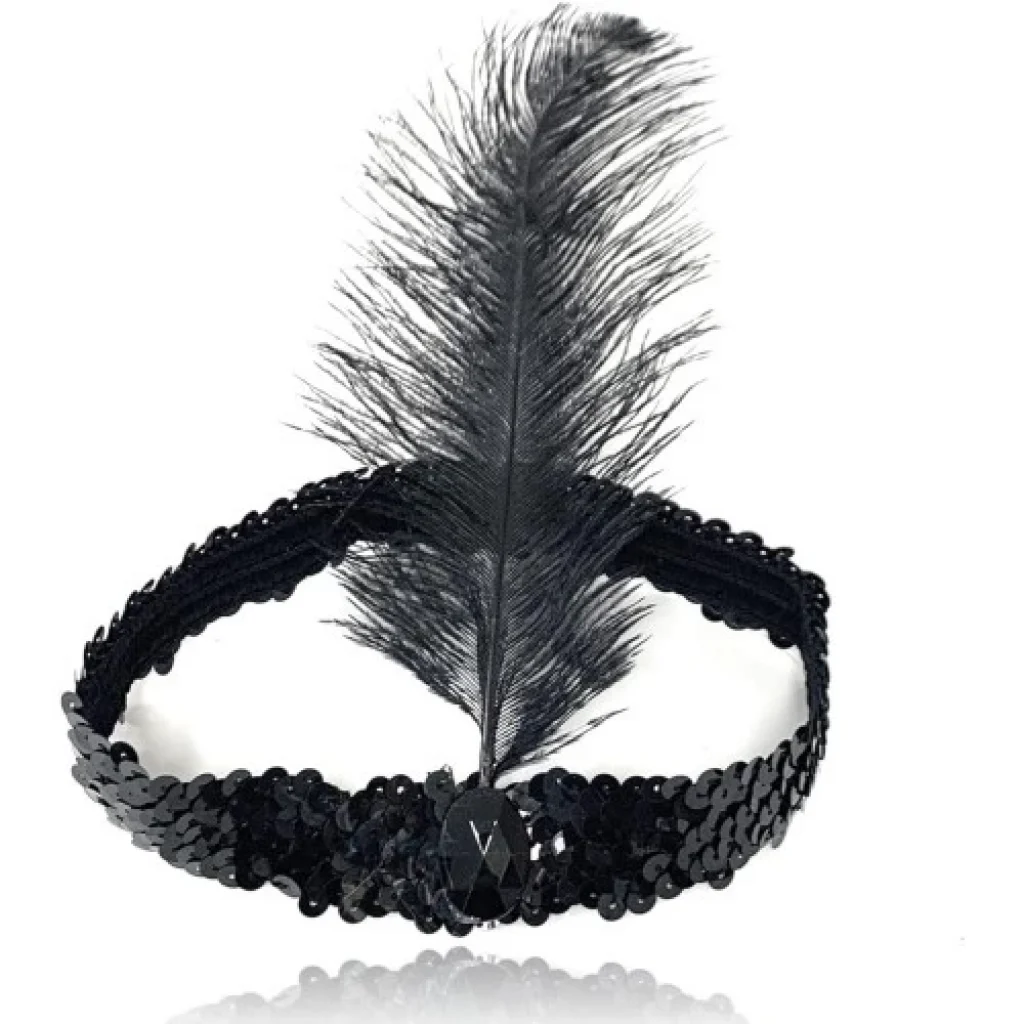 • Siyah Renk Çarliston Başlık 90 lı Yıllar 80 li Yıllar Tüylü Saç Bandı