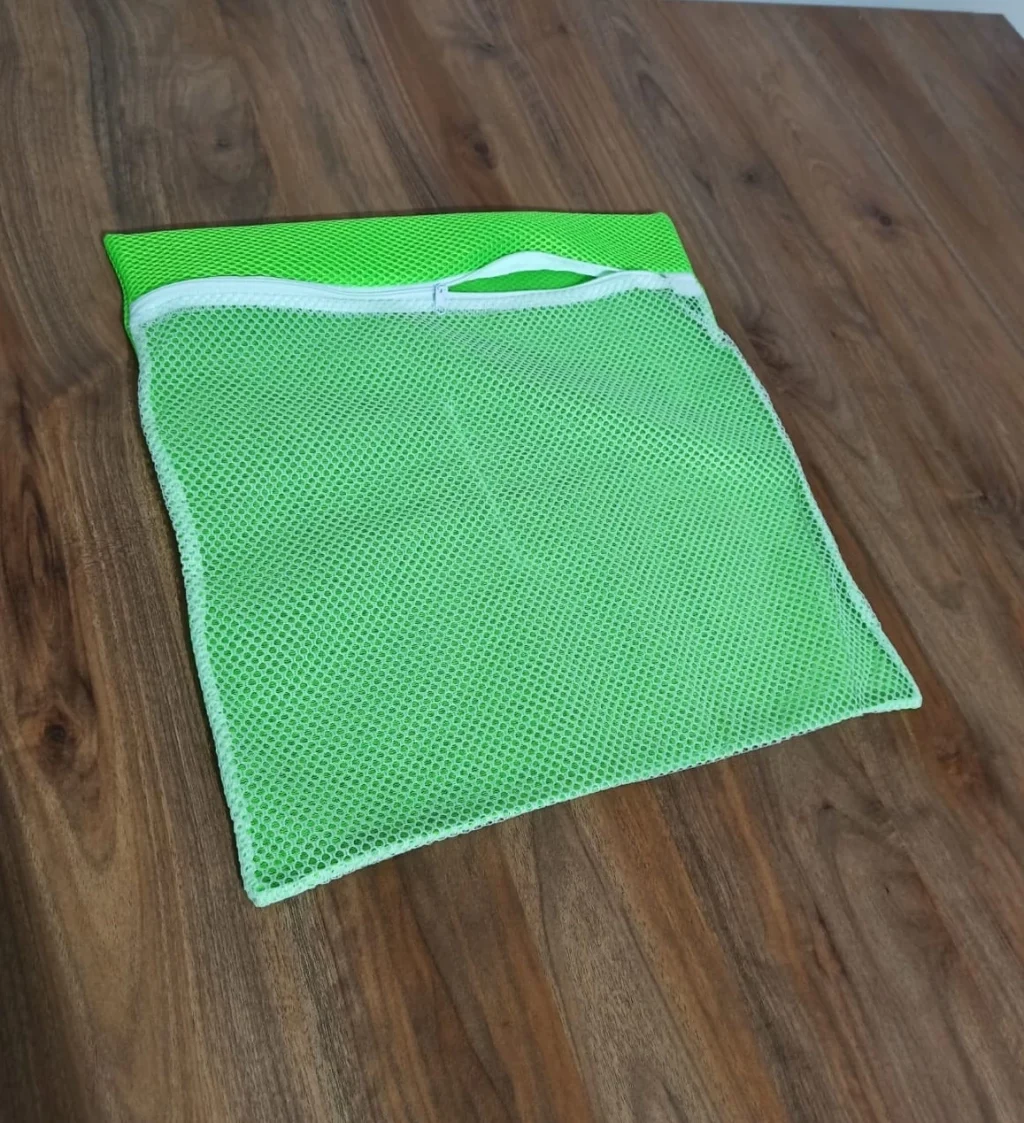 Yeşil - Fermuarlı - Hassas Çamaşır Terlik Ayakkabı Yıkama Filesi Büyük Boy