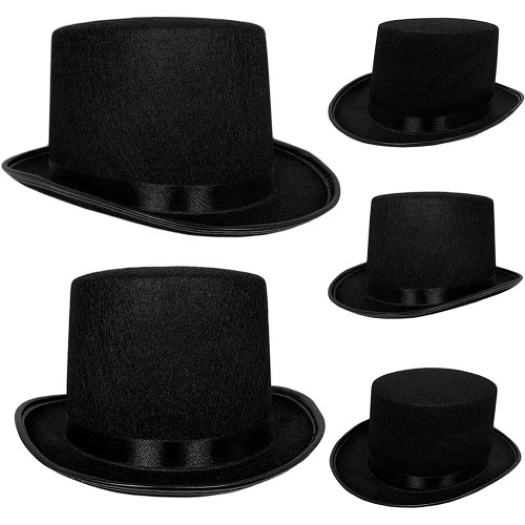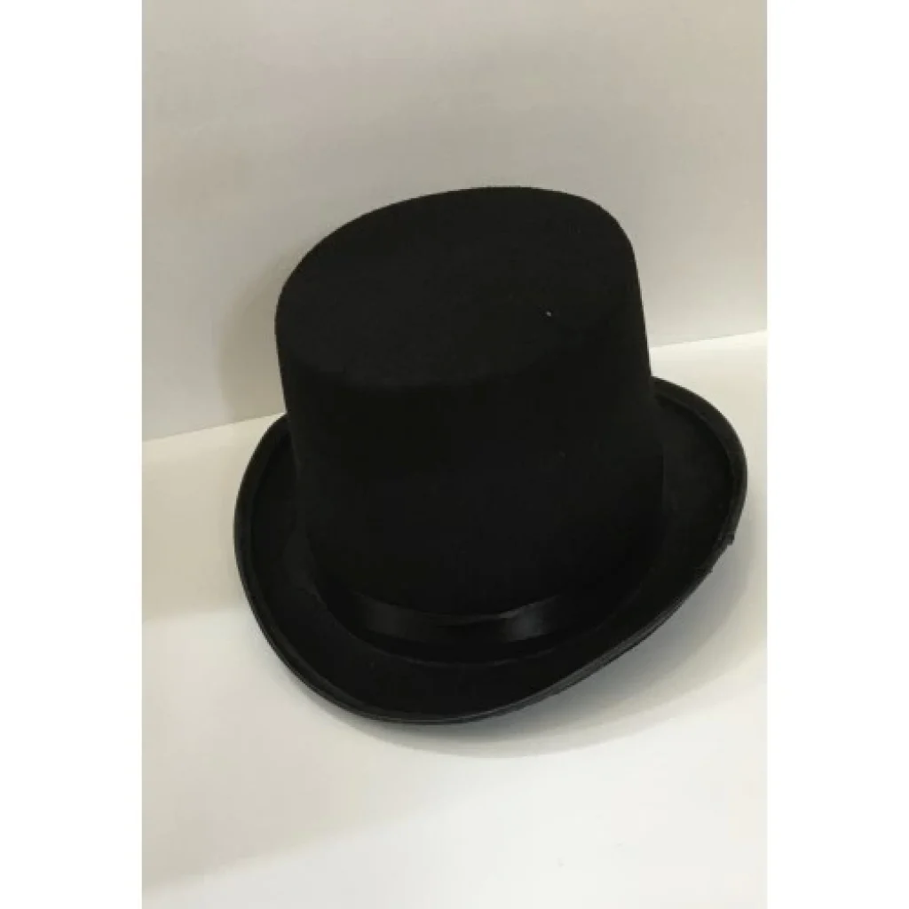 • Yetişkinler İçin Siyah Renk Ringmaster Sihirbaz Şapkası Fötr Şapka 15 cm