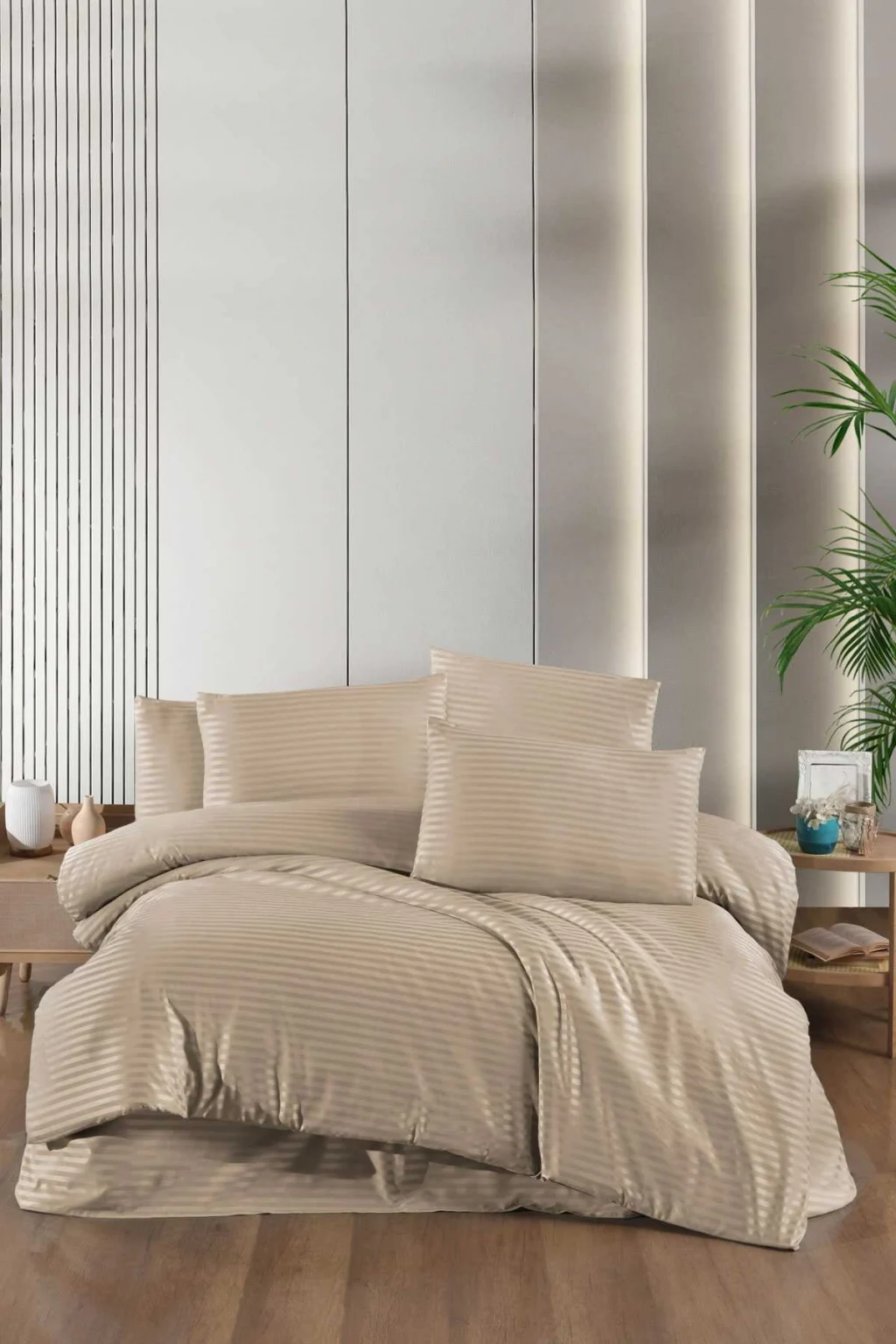 Stripe Saten Line Çift Kişilik Nevresim Takımı Bej