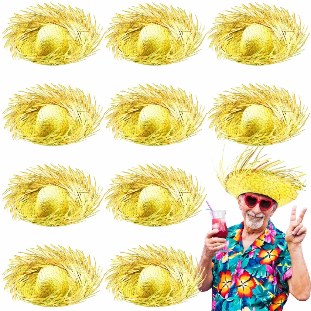 Tropikal Parti Sarı Hasır Hawaii Şapkası 13x36 Cm